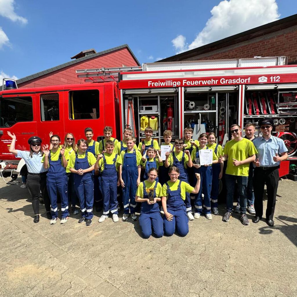 Bei bestem sommerlichen Wetter haben am gestrigen Samstagvormittag die Pokalwettbewerbe in Grasdorf stattgefunden. Dabei trafen 12 Gruppen aus dem gesamten Landkreis Hildesheim zusammen, um ihr Können in einem Löschangriff und einer Schnelligkeitsübung unter Beweis zu stellen. Unsere Jugendfeuerwehr nahm mit zwei Gruppen teil und präsentierte dem Wertungsgericht vier super Übungen, wodurch sie den 1. und 5. Platz erreicht haben.
