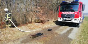 Eine am Wegesrand stehende Bank, sowie ca. 10 m² Böschung standen in Brand. Mit dem Schnellangriff wurde dieser Brand gelöscht, anschließend die Bankreste mit der Wärmebildkamera kontrolliert. Nach ca. 20 Minuten konnten wir wieder einrücken.