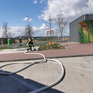 Am Dienstagmittag wurden wir zu einer brennenden Mülltonne auf den Rastplatz Jägerturm alarmiert. An der Einsatzstelle fanden wir einen runtergebrannten Mülleimer vor, welchen wir mittels C-Rohr löschten. Nachdem wir das Brandgut auseinander gezogen hatten und alles nochmal abgeschlöscht haben, war der Einsatz für uns beendet.