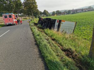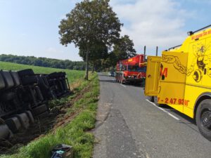 Wir wurden von der Leitstelle zu einem Verkehrsunfall mit eingeklemmter Person alarmiert. Bereits auf der Anfahrt teilte uns die Leitstelle mit, dass es sich um einen LKW Unfall zwischen Henneckenrode und Nette handelt. Vor Ort bestätigte sich die erste Meldung einer eingeklemmten Person nicht. Ein LKW lag im Straßengraben und der Fahrer konnte eigenständig über eine Leiter aus seinem Fahrzeug aussteigen. Wir sperrten die Straße in Henneckenrode und Nette bis zum Eintreffen der Straßenmeisterei und konnten anschließend wieder einrücken.