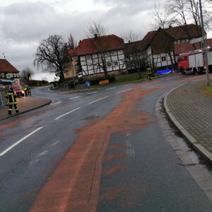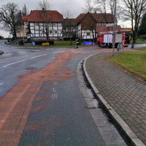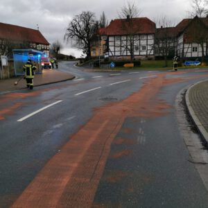 Von der Leitstelle wurden wir zu einer Ölspur nach Henneckenrode alarmiert. Die Kameraden aus der Feuerwehr Nette haben uns nachgefordert, da im Kurvenwald (L493) zwischen Henneckenrode und Nette ein Fahrzeug verunfallt ist, welches vorher durch Henneckenrode eine Ölspur gezogen hat. Für die Reinigungsarbeiten wurde der Kurvenwald bis 19 Uhr gesperrt. Ebenfalls wurde die Ölspur in Henneckenrode und am Ortsausgang Sottrum abgestreut und mit Ölspur-Warnschildern abgesichert. Ein Dankeschön geht an Familie Senholdt aus Henneckenrode, die unseren absperrenden Kameraden Kaffee zum Aufwärmen gereicht hat.