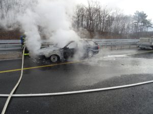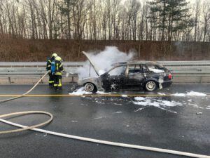 Wir wurden zu einem PKW Brand zwischen der Betriebsauffahrt Sillium und der Abfahrt Derneburg in Fahrtrichtung Nord auf die Autobahn 7 alarmiert. Bereits auf der Anfahrt zeigte war zu erkennen, dass der PKW im Vollbrand stand. Leider wurde in der engen Baustelle keine Rettungsgasse gebildet, sodass ein Durchkommen für unsere Fahrzeuge nur sehr schwierig und mit erheblichem Zeitverlust möglich war. Anfängliche Meldungen, dass sich eine Person im Fahrzeug befindet konnten zum Glück nicht bestätigt werden. Wir löschen den PKW mit einem Trupp unter schwerem Atemschutz ab. Anschließend erstickten wir mit Schaum die restlichen Brandnester und bindeten auslaufende Betriebsstoffe mit Bindemittel. Nach Abschluss der Arbeiten konnten wir wieder einrücken.