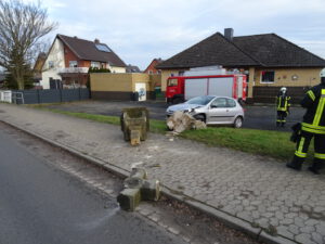 Von der Leitstelle wurden wir zu einer Hilfeleistung Straße reinigen nach einem Verkehrsunfall gerufen. Dies ist für uns zunächst nichts Ungewöhnliches, da es nach Verkehrsunfällen oft gilt Betriebsstoffe aufzunehmen und Splitter von der Straße zu fegen. In diesem Fall bezog sich das Reinigen der Straße auf das Denkmal an der Ecke Sottrumer Straße – Kampfstraße. Dies wurde bei einem Verkehrsunfall umgefahren und ist auf die Straße gestürzt. Mit vereinten Kräften konnten die Bruchstücke auf den Seitenstreifen verbracht werden. Anschließend kontrollierten wir den Unfallwagen auf auslaufende Betriebsstoffe. Da dies nicht der Fall war konnten wir danach wieder in den Standort einrücken. Der Fahrer des Autos wurde zunächst von einem zufällig vorbeikommenden Krankenwagen betreut und anschließend an den alarmierten Rettungswagen übergeben.